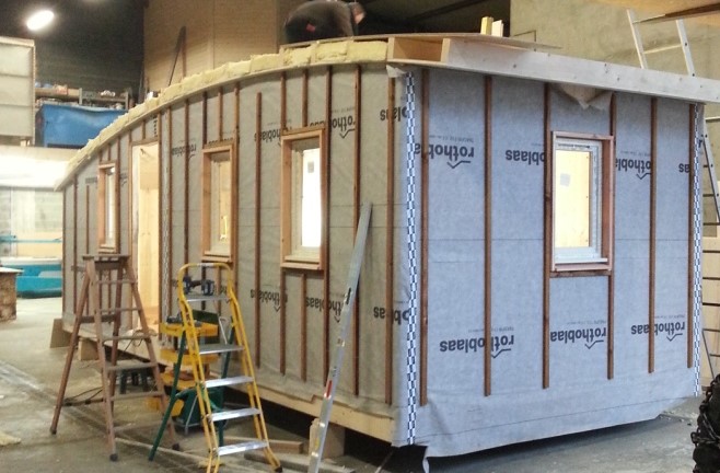 L'ensemble est taillée sur centre d'usinage à commande numérique. L'assemblage des panneaux est réalisé en atelier puis livré sur chantier avec camion grue.